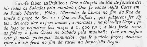 A Gazeta do Rio de Janeiro, pelo contrário, adota a regra padrão e anuncie já no primeiro número quando irá circular.