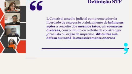 Todo cidadão que se sente prejudicado por uma reportagem, artigo ou opinião emitida por um jornalista ou comunicador tem direito a buscar uma reparação na Justiça. No entanto, quando o processo judicial tem o objetivo de calar os jornalistas ou busca uma indenização desproporcional, o que se tem é o assédio judicial. O assédio judicial […]