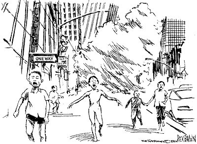 TRAÇOS DE FOGO Um premiado cartunista do jornal Sacramento Bee, nos EUA, feriu os sentimentos de alguns americanos com uma charge que parece sugerir que os ataques terroristas foram um revide ao envolvimento do país na guerra do Vietnã. A charge, publicada no dia 13, foi criada por Rex Babin sobre uma foto famosa, da […]