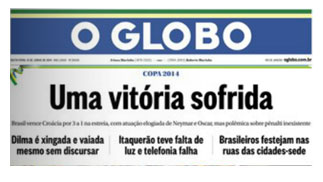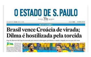 No Valor do dia de abertura da Copa do Mundo (12/6), o colunista César Felício faz uma síntese de abordagens da imprensa estrangeira sobre o panorama do país (“Brasil na Copa: ‘Welcome to the jungle’”, pág. A9):