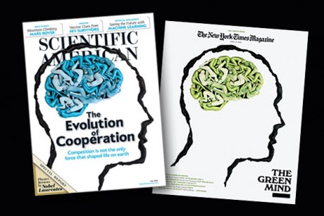 A capa de julho da revista Scientific American, com o título “A Evolução da Cooperação”, traz o desenho de uma cabeça humana com o cérebro formado pela foto de várias pessoas juntas. A capa de 19 de abril de 2009 da New York Times Magazine traz exatamente a mesma imagem. Ambas as artes são de autoria do fotógrafo Stephen Wilkes. A única diferença está na cor dos corpos que ilustram o cérebro: na Scientific American, as roupas são azuis; na revista do Times, verdes.
