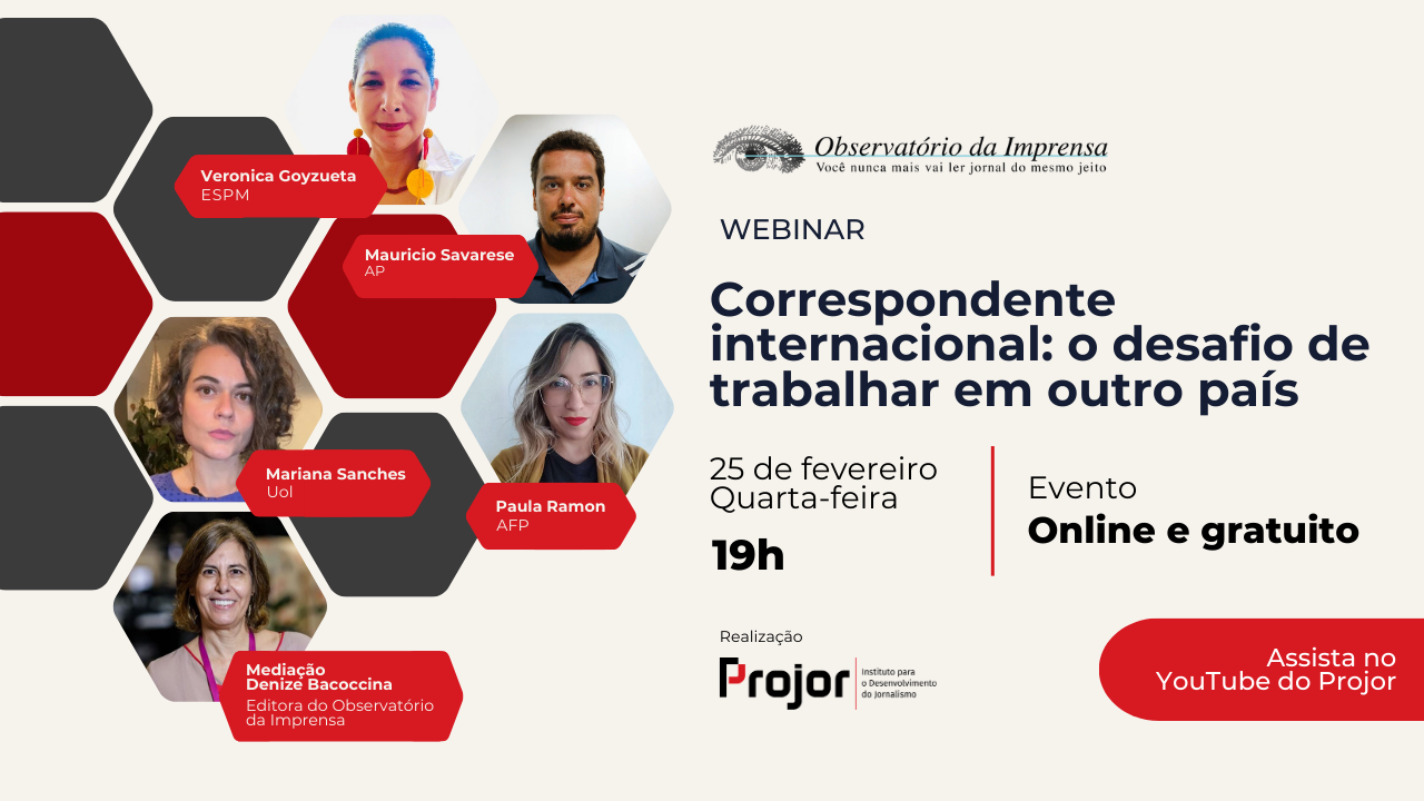 Esses são alguns dos temas que serão debatidos no webinário Correspondente internacional: o desafio de trabalhar em outro país, no dia 25 de fevereiro, a partir das 19h, no YouTube do Projor.